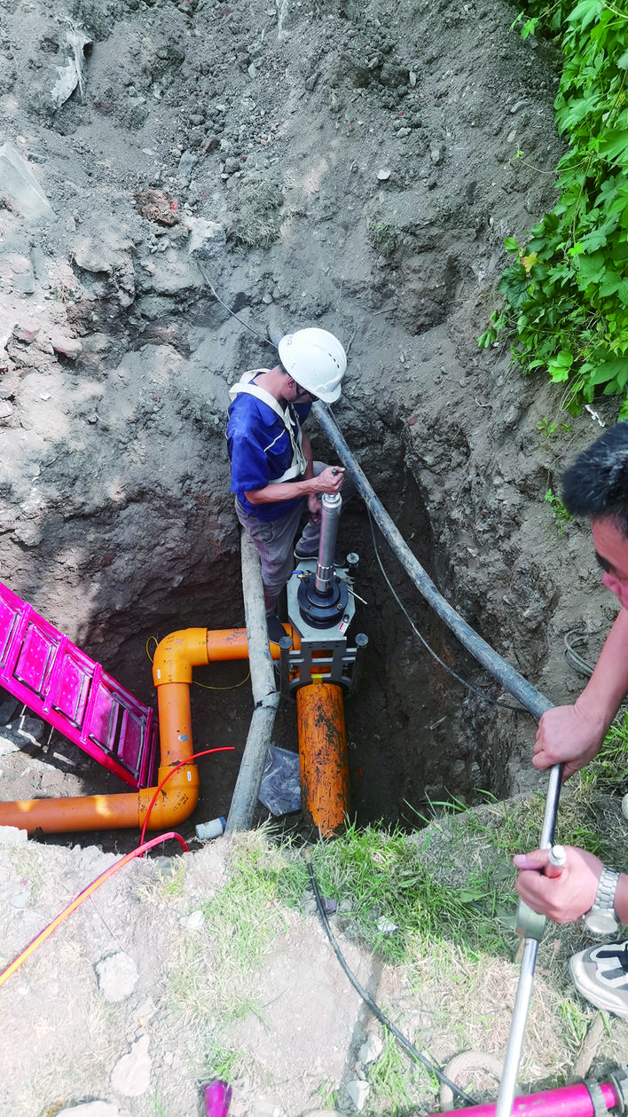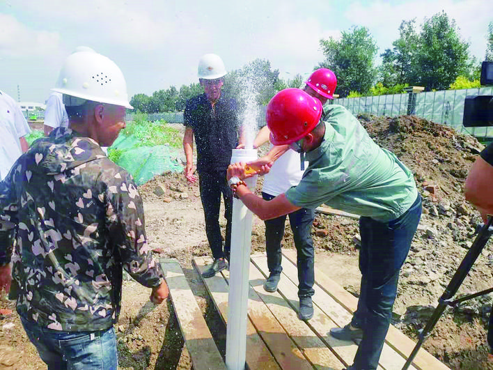經(jīng)開區(qū)觀天下二期項目用水工程從報裝到通水僅用了40分鐘。圖為工作人員打開水管閥門?!绑@喜!”20日, 上午,在經(jīng)開區(qū)觀天下二期項目的工地.上,吉林富騰集團房地產(chǎn)開發(fā)有限責(zé)任公司總經(jīng)理助理陳中秋看著水管里冒出的水流,高興得合不攏嘴。